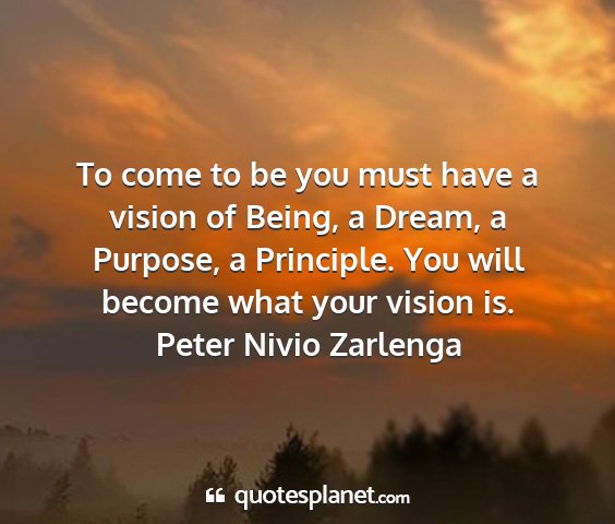 To come to be you must have a vision of Being, a Dream, a Purpose, a Principle. You will become what your vision is.Peter Nivio Zarlenga