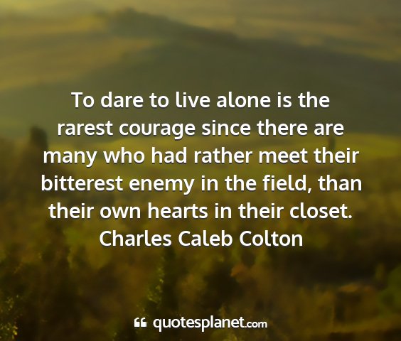To dare to live alone is the rarest courage since there are many who had rather meet their bitterest enemy in the field, than their own hearts in their closet.Charles Caleb Colton