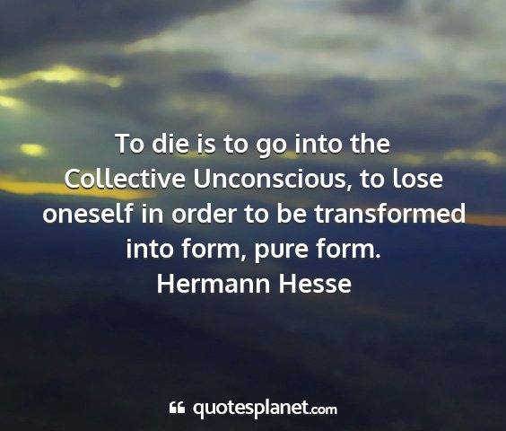 To die is to go into the Collective Unconscious, to lose oneself in order to be transformed into form, pure form.Hermann Hesse