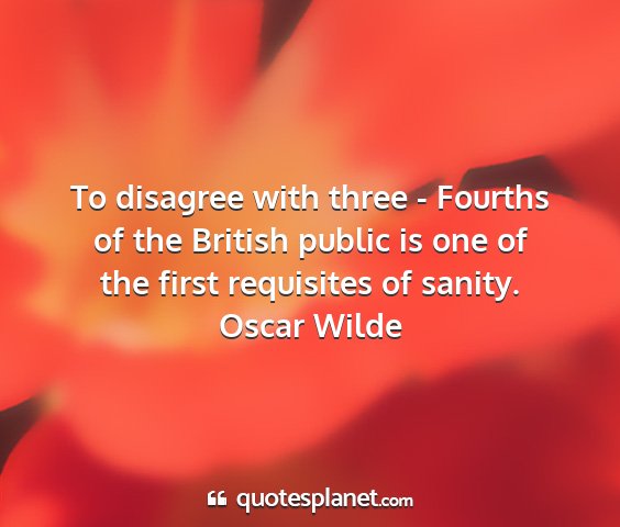 To disagree with three - Fourths of the British public is one of the first requisites of sanity.Oscar Wilde