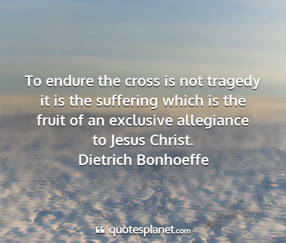To endure the cross is not tragedy it is the suffering which is the fruit of an exclusive allegiance to Jesus Christ.Dietrich Bonhoeffe