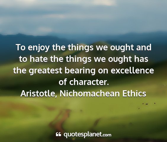To enjoy the things we ought and to hate the things we ought has the greatest bearing on excellence of character.Aristotle, Nichomachean Ethics