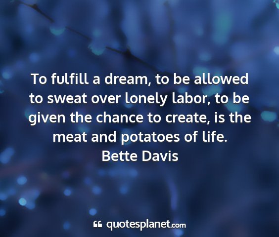 To fulfill a dream, to be allowed to sweat over lonely labor, to be given the chance to create, is the meat and potatoes of life.Bette Davis