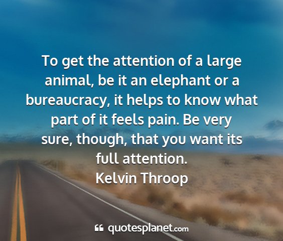 To get the attention of a large animal, be it an elephant or a bureaucracy, it helps to know what part of it feels pain. Be very sure, though, that you want its full attention.Kelvin Throop