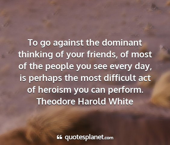 To go against the dominant thinking of your friends, of most of the people you see every day, is perhaps the most difficult act of heroism you can perform.Theodore Harold White