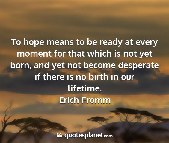 To hope means to be ready at every moment for that which is not yet born, and yet not become desperate if there is no birth in our lifetime.Erich Fromm