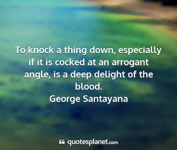 To knock a thing down, especially if it is cocked at an arrogant angle, is a deep delight of the blood.George Santayana