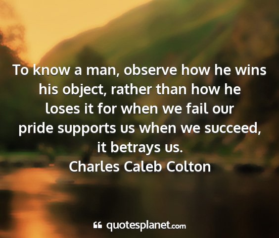 To know a man, observe how he wins his object, rather than how he loses it for when we fail our pride supports us when we succeed, it betrays us.Charles Caleb Colton