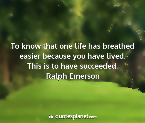 To know that one life has breathed easier because you have lived. This is to have succeeded.Ralph Emerson