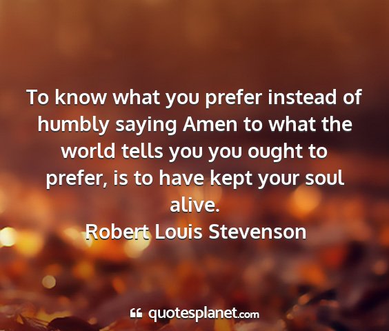 To know what you prefer instead of humbly saying Amen to what the world tells you you ought to prefer, is to have kept your soul alive.Robert Louis Stevenson