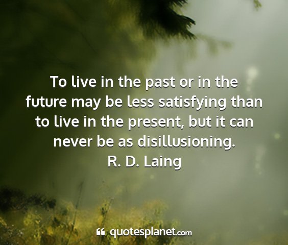 To live in the past or in the future may be less satisfying than to live in the present, but it can never be as disillusioning.R. D. Laing