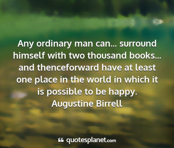 Any ordinary man can... surround himself with two thousand books... and thenceforward have at least one place in the world in which it is possible to be happy.Augustine Birrell