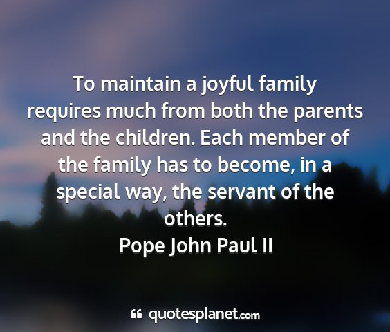 To maintain a joyful family requires much from both the parents and the children. Each member of the family has to become, in a special way, the servant of the others.Pope John Paul II