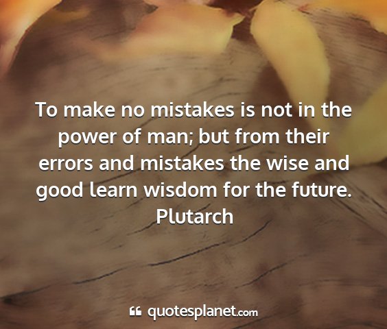 To make no mistakes is not in the power of man; but from their errors and mistakes the wise and good learn wisdom for the future.Plutarch