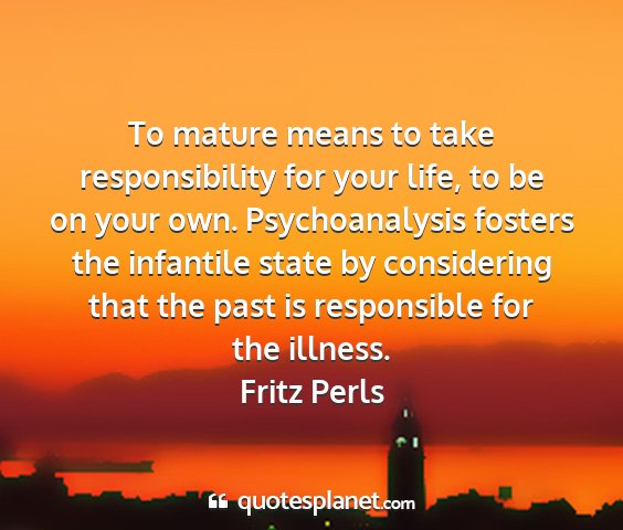 To mature means to take responsibility for your life, to be on your own. Psychoanalysis fosters the infantile state by considering that the past is responsible for the illness.Fritz Perls