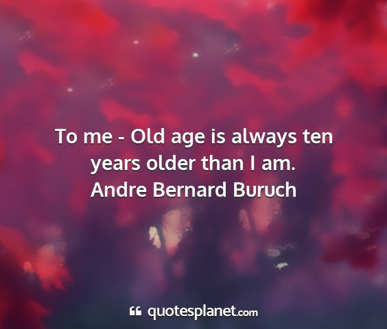 To me - Old age is always ten years older than I am.