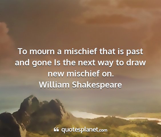 To mourn a mischief that is past and gone Is the next way to draw new mischief on.William Shakespeare