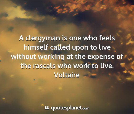 A clergyman is one who feels himself called upon to live without working at the expense of the rascals who work to live.Voltaire