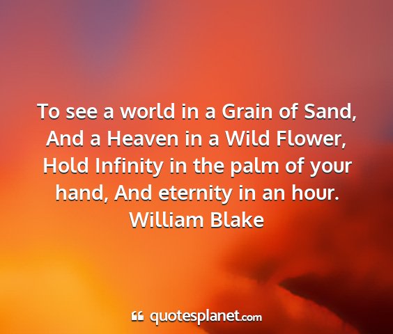 To see a world in a Grain of Sand, And a Heaven in a Wild Flower, Hold Infinity in the palm of your hand, And eternity in an hour.William Blake