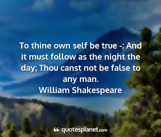 To thine own self be true -; And it must follow as the night the day; Thou canst not be false to any man.William Shakespeare