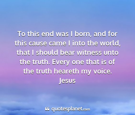 To this end was I born, and for this cause came I into the world, that I should bear witness unto the truth. Every one that is of the truth heareth my voice.Jesus