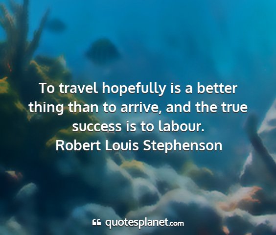 To travel hopefully is a better thing than to arrive, and the true success is to labour.Robert Louis Stephenson