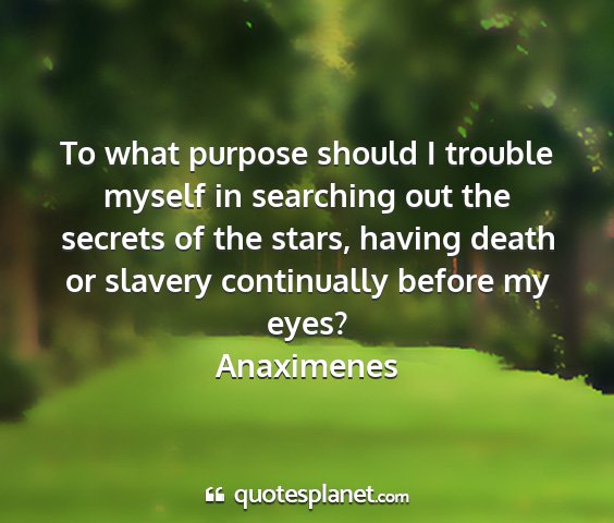 To what purpose should I trouble myself in searching out the secrets of the stars, having death or slavery continually before my eyes?Anaximenes
