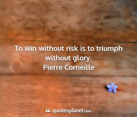 To win without risk is to triumph without glory.