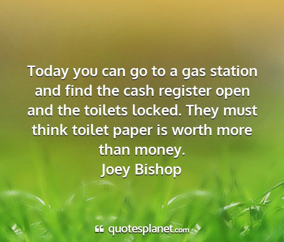 Today you can go to a gas station and find the cash register open and the toilets locked. They must think toilet paper is worth more than money.Joey Bishop