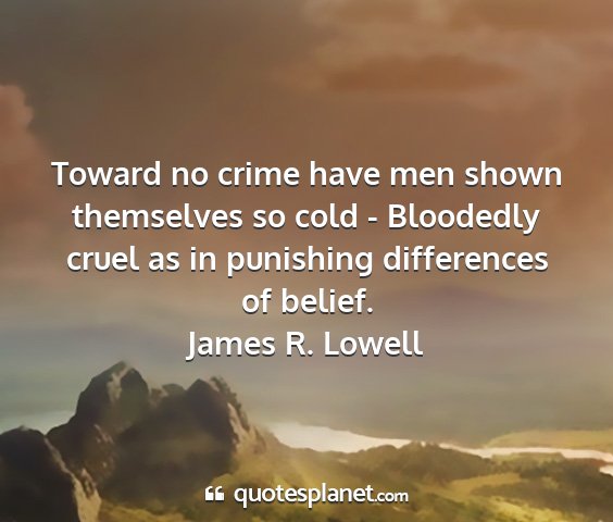 Toward no crime have men shown themselves so cold - Bloodedly cruel as in punishing differences of belief.James R. Lowell