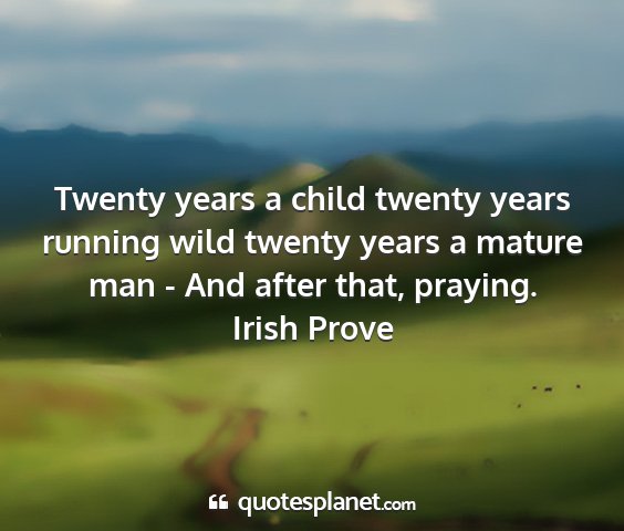 Twenty years a child twenty years running wild twenty years a mature man - And after that, praying.Irish Prove
