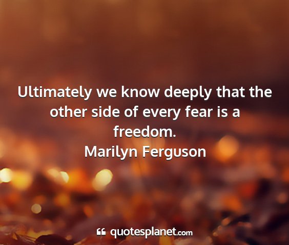 Ultimately we know deeply that the other side of every fear is a freedom.