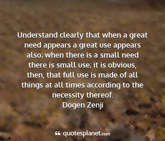 Understand clearly that when a great need appears a great use appears also; when there is a small need there is small use; it is obvious, then, that full use is made of all things at all times according to the necessity thereof.Dogen Zenji