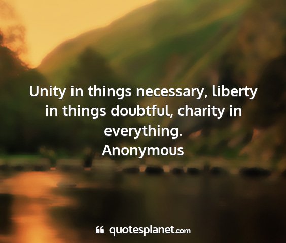 Unity in things necessary, liberty in things doubtful, charity in everything.