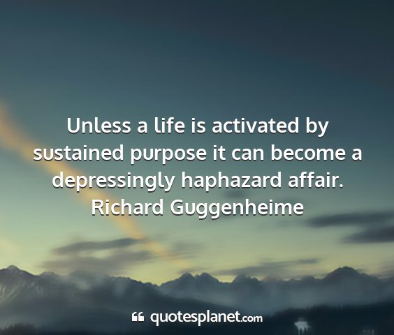 Unless a life is activated by sustained purpose it can become a depressingly haphazard affair.Richard Guggenheime