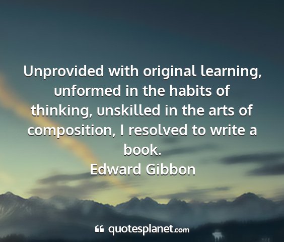 Unprovided with original learning, unformed in the habits of thinking, unskilled in the arts of composition, I resolved to write a book.Edward Gibbon