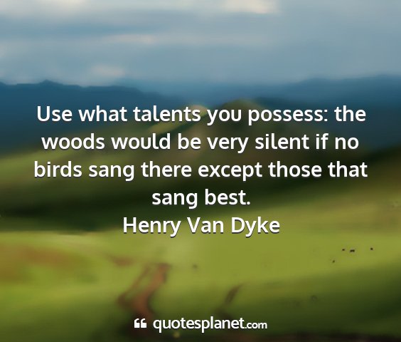 Use what talents you possess: the woods would be very silent if no birds sang there except those that sang best.Henry Van Dyke