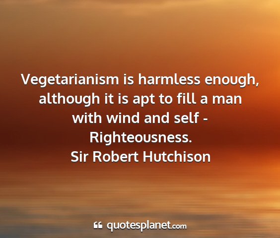 Vegetarianism is harmless enough, although it is apt to fill a man with wind and self - Righteousness.Sir Robert Hutchison