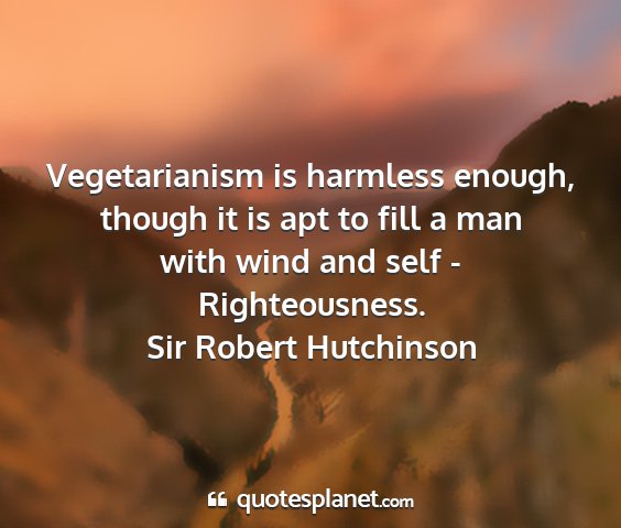 Vegetarianism is harmless enough, though it is apt to fill a man with wind and self - Righteousness.Sir Robert Hutchinson