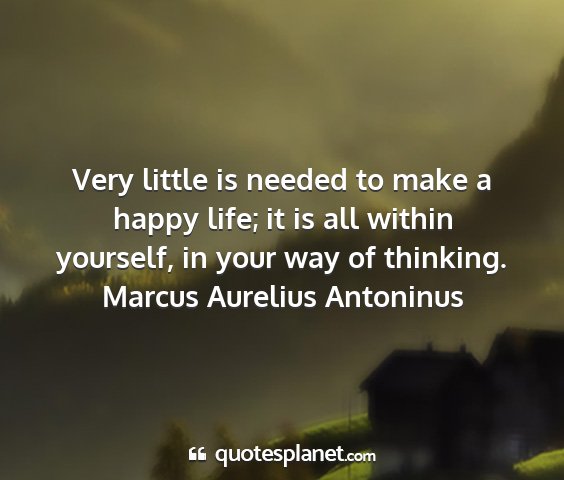 Very little is needed to make a happy life; it is all within yourself, in your way of thinking.Marcus Aurelius Antoninus