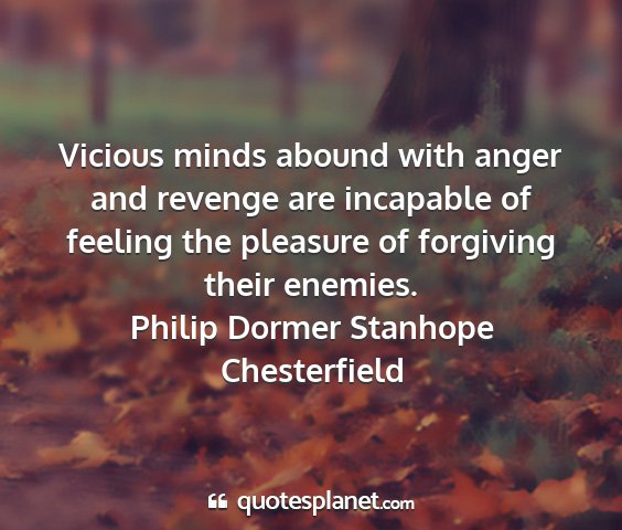 Vicious minds abound with anger and revenge are incapable of feeling the pleasure of forgiving their enemies.Philip Dormer Stanhope Chesterfield