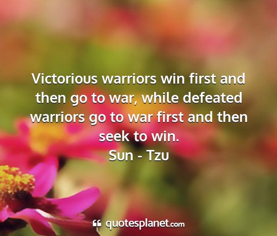 Victorious warriors win first and then go to war, while defeated warriors go to war first and then seek to win.Sun - Tzu