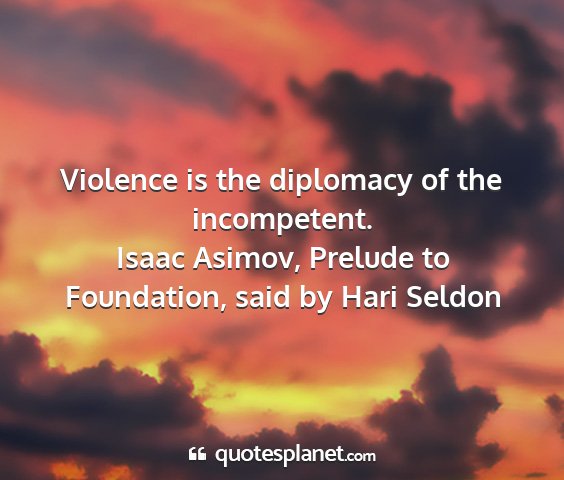 Violence is the diplomacy of the incompetent.Isaac Asimov, Prelude to Foundation, said by Hari Seldon