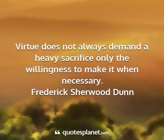 Virtue does not always demand a heavy sacrifice only the willingness to make it when necessary.Frederick Sherwood Dunn