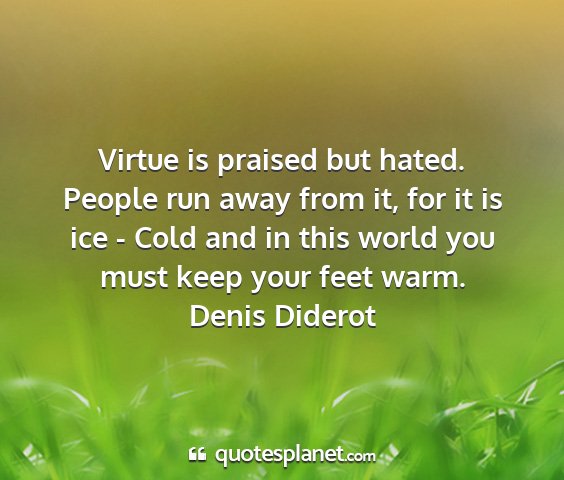 Virtue is praised but hated. People run away from it, for it is ice - Cold and in this world you must keep your feet warm.Denis Diderot