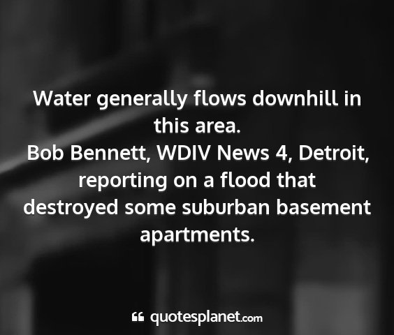 Water generally flows downhill in this area.Bob Bennett, WDIV News 4, Detroit, reporting on a flood that destroyed some suburban basement apartments.