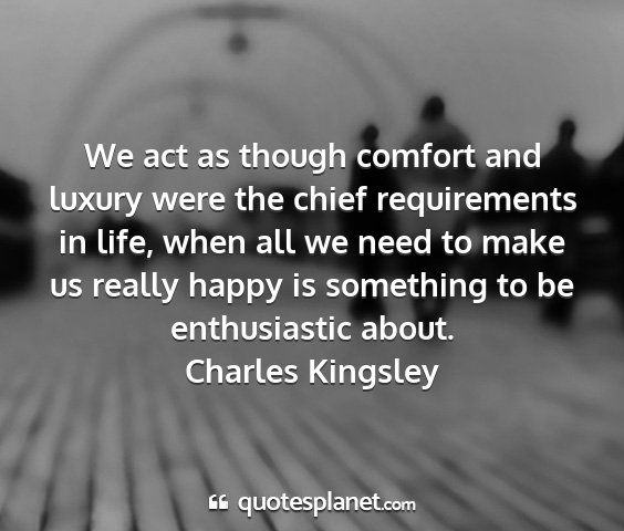 We act as though comfort and luxury were the chief requirements in life, when all we need to make us really happy is something to be enthusiastic about.Charles Kingsley