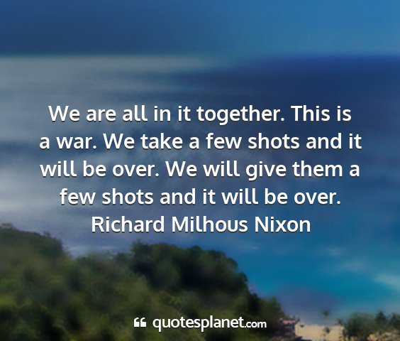 We are all in it together. This is a war. We take a few shots and it will be over. We will give them a few shots and it will be over.Richard Milhous Nixon