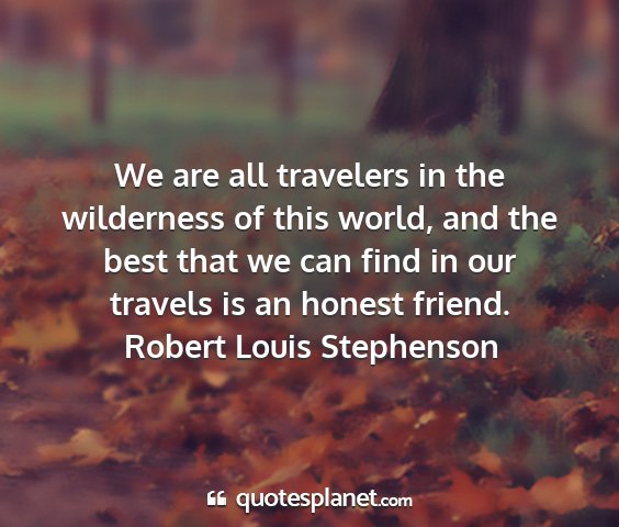 We are all travelers in the wilderness of this world, and the best that we can find in our travels is an honest friend.Robert Louis Stephenson