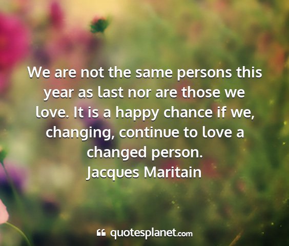 We are not the same persons this year as last nor are those we love. It is a happy chance if we, changing, continue to love a changed person.Jacques Maritain